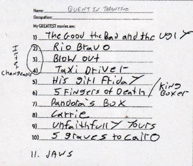 В личном рейтинге режиссера оказалось 11 кинокартин. Возглавил топ фильм итальянского режиссера Серджио Леоне "Хороший, плохой, злой", вышедший в 1966 году.