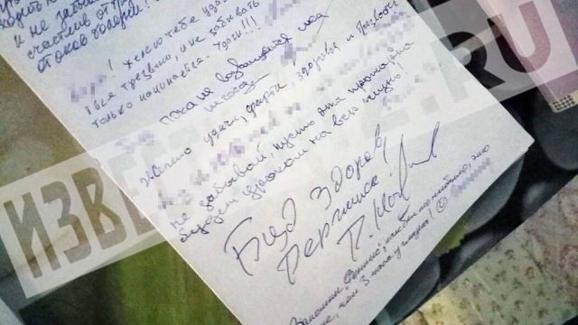 Кроме того, в распоряжении РЕН ТВ оказалась записка, на которой Марьянов оставил свои пожелания пациенту медицинского учреждения и свой автограф.