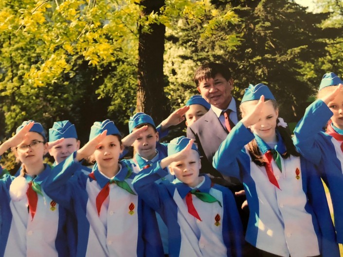 Ермухамет Ертысбаев с белорусскими пионерами. Фото из личного архива