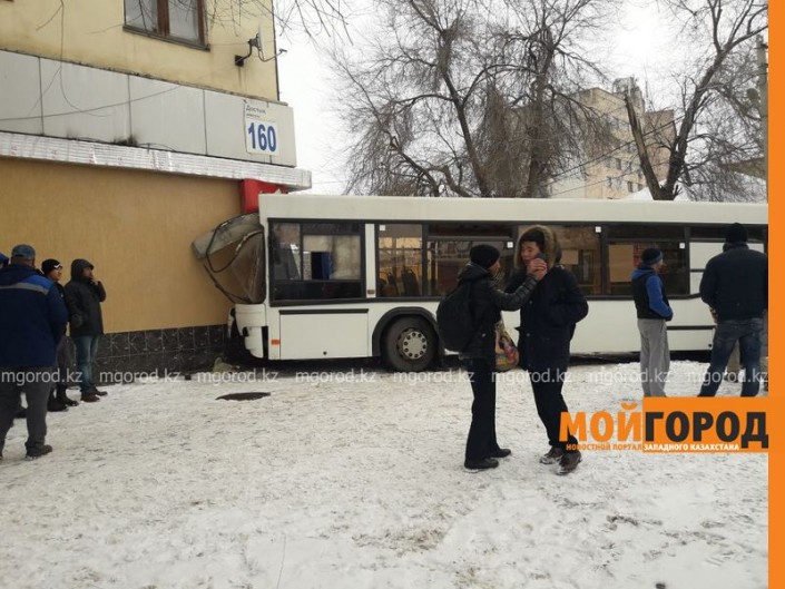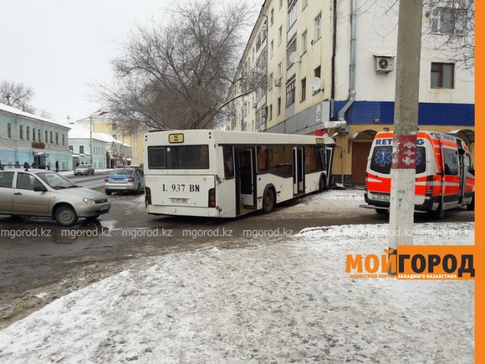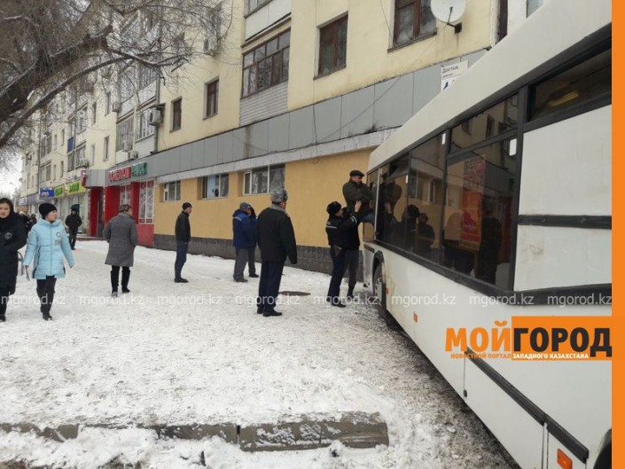 Автобус врезался в многоэтажку в Уральске, уходя от столкновения