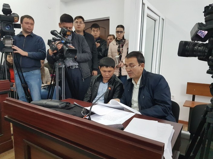 Подсудимый Даурен Жанабаев с адвокатом. Фото Tengrinews.kz