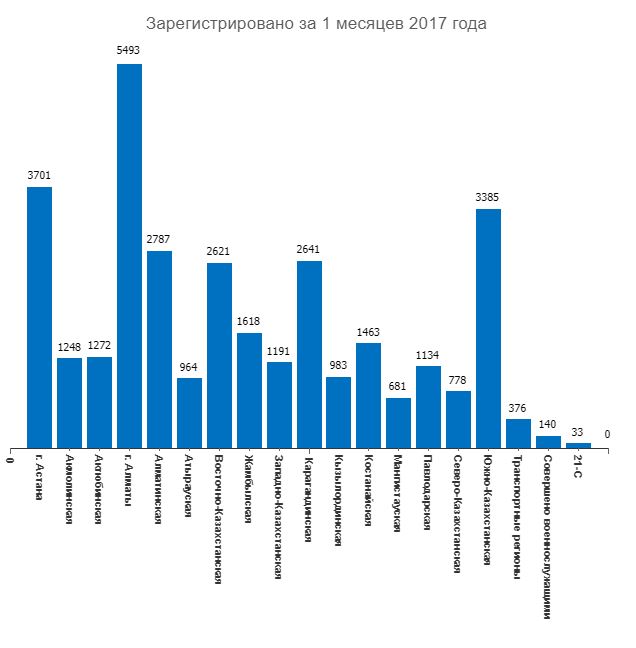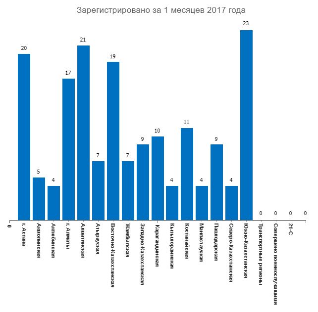Согласно статистике за месяц, на первом месте по количеству заявлений об изнасиловании находится Южно-Казахстанская область. Там обратились в полицию 23 женщины. Для сравнения, в прошлом году за аналогичный период было 46 заявлений. На втором месте Алматинская область - 21 (в прошлом году - 20). На третьем месте - Астана, 20 фактов (в прошлом году - 19). Всего по Казахстану зарегистрировано 174 факта изнасилования за месяц, а это меньше на 30,7 процента по сравнению с аналогичным периодом прошлого года.