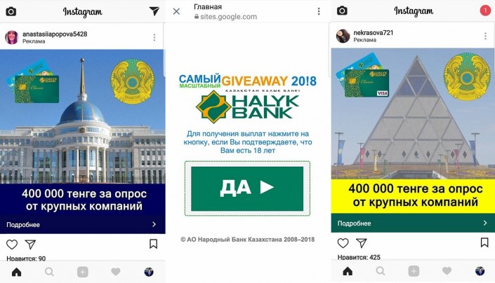 В соцсети Instagram от имени АО "Народный Банк Казахстана" предлагают пройти опрос за плату, обещая выигрыш от 350 до 700 тысяч тенге. Администрация банка предупредила казахстанцев об опасности, передает Tengrinews.kz.