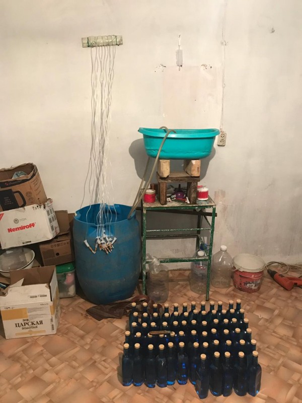 Мужчину, в багажнике автомобиля которого находился алкоголь сомнительного происхождения, задержали 19 апреля. В ходе проведения дальнейшей проверки был установлен подпольный цех, где изготавливали спиртные напитки.