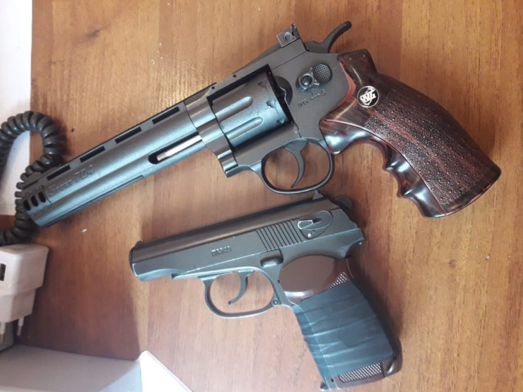 Вызвав участкового, военнослужащий совместными действиями задержал вооруженного гражданина, после чего его доставили в УП для дальнейшего разбирательства. Мужчина был вооружен пневматическим пистолетом Макарова и револьвером.