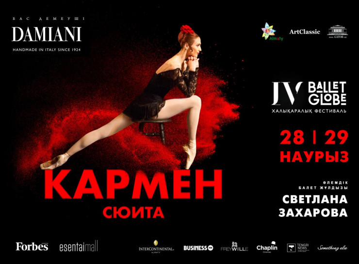 В Алматы 28 и 29 марта фестиваль Ballet Globe откроется легендарным спектаклем "Кармен-сюита" с участием Светланы Захаровой - прима-балерины Большого театра, этуали театра Ла-Скала, народной артистки России, одной из самых известных и востребованных балерин мира.