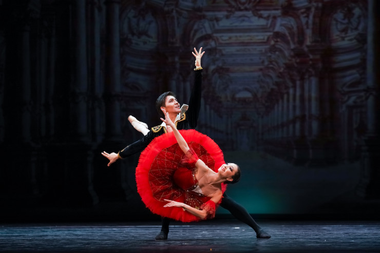 Другой премьерой вечера стал дуэт из балета "Спартак" А. Хачатуряна в хореографии Георгия Ковтуна. На сцену столичного театра фрагмент из спектакля перенес художественный руководитель "Астана Балет", заслуженный деятель РФ Нурлан Канетов. Спартака и Фригию воплотили Фархад Буриев и Айнур Абильгазина.