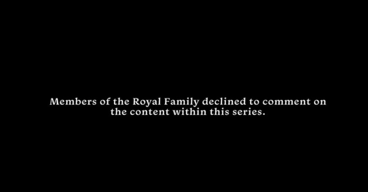 Сам конфликт начался с небольшой заставки в самом начале фильма. На черном фоне было написано, что королевская семья отказалась комментировать содержание сериала.