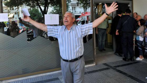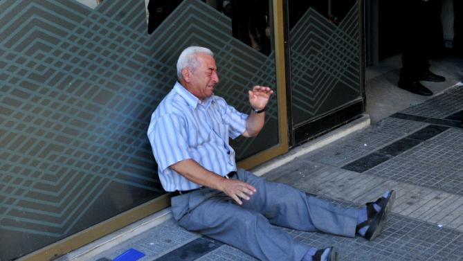 77-летний грек простоял в очередях в нескольких банках в городе Салоники, пытаясь снять пенсию своей жены (около 120 евро). После четвертой неудачной попытки мужчина упал на асфальт и дал волю эмоциям.