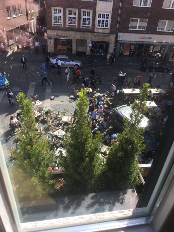 Кафе, где сидели пострадавшие, находится в историческом центре города. В Мюнстере проживает менее 300 000 человек, это средний по меркам Германии город, но его исторический облик привлекает множество туристов.