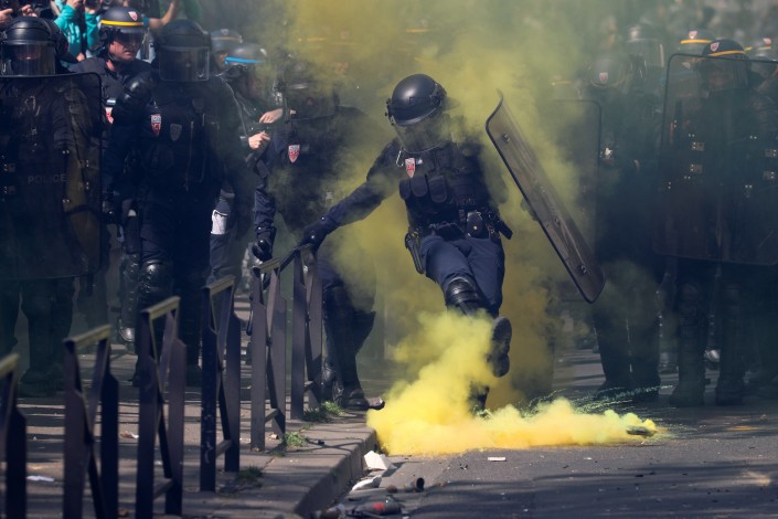 По данным издания, протестующие закидывают правоохранителей всем, что попадается под руку, в ход пошли самокаты и кирпичи. Таким образом люди провоцируют полицию. В частности, средства передвижения полетели в полицейских в 800 метрах от площади Бастилии.