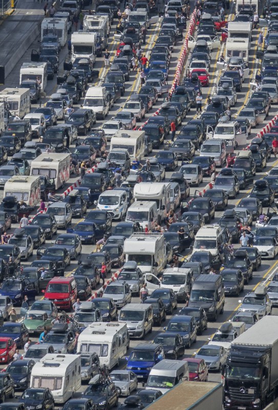 На подъезде к британскому порту Дувр последние два дня наблюдаются 20-километровые пробки из автомобилистов, желающих покинуть Великобританию в разгар отпусков. В затор попали около 250 тысяч человек. Власти порта обвинили в транспортном коллапсе французскую сторону, усилившую проверки безопасности после терактов в Париже и Ницце, пишет газета Independent.