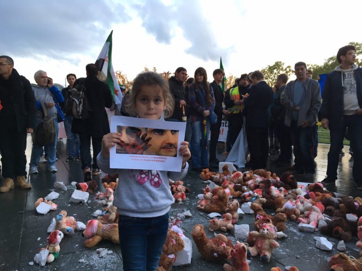 Президента России Владимира Путина, прилетевшего вечером 19 октября в Берлин на "Нормандские переговоры", встретила группа протестующих с украинскими и сирийскими флагами. В руках они держали плакаты: "Путин, хватит бомбить Сирию", "Стоп, Путин", "Путин-террорист". Об этом сообщает Tengrinews.kz.