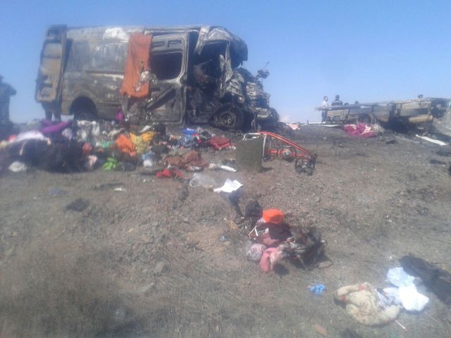 В результате столкновения транспортные средства загорелись, на месте пожара были обнаружили 14 сгоревших тел. Среди погибших на месте оказались водитель автомашины "Газель" и 13 пассажиров микроавтобуса Mercedes-Benz Sprinter (трое из них - дети), сообщает пресс-служба ведомства.