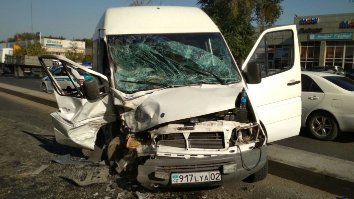 В Алматы произошло лобовое столкновение двух минивэнов - Delica и Mercedes-Benz, передает корреспондент программы "Территория происшествий" на канале СТВ.