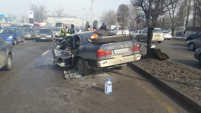 Еще одно серьезное ДТП произошло позднее, днем 16 февраля по Саина, не доезжая проспекта Рыскулова. Как рассказали очевидцы, водитель BMW, двигаясь в северном направлении, не справился с управлением и снес металлическое ограждение. Далее он вылетел на полосу встречного движения и столкнулся с Audi.