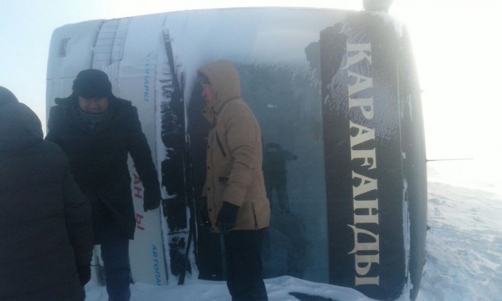 20 человек с детьми ждут помощи на трассе в перевернутом автобусе в Карагандинской области