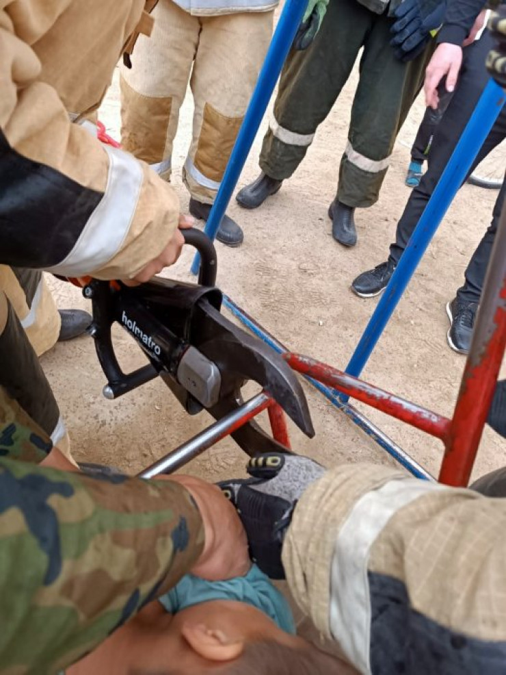 На помощь вызвали спасателей, которые разжали детали качели при помощи специального гидравлического инструмента. Мальчика передали его матери.