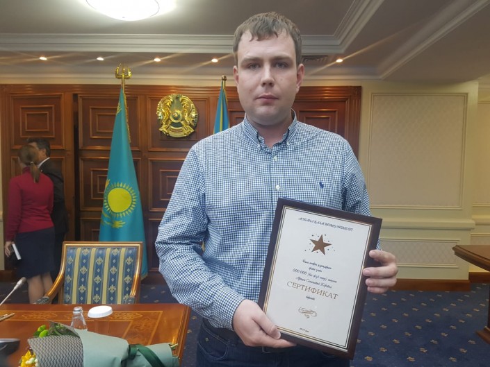 Градоначальник подарил астанчанину сертификат на 500 тысяч тенге.