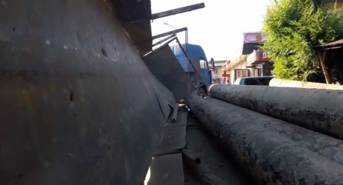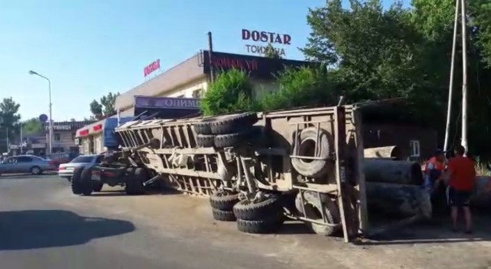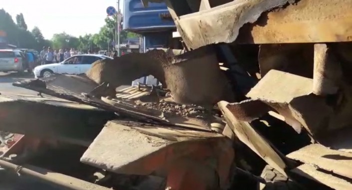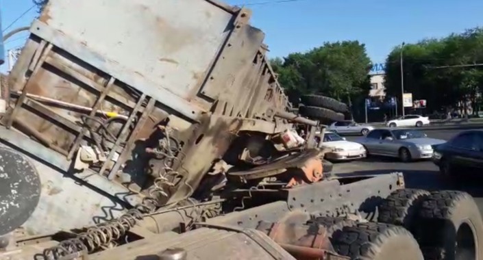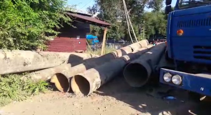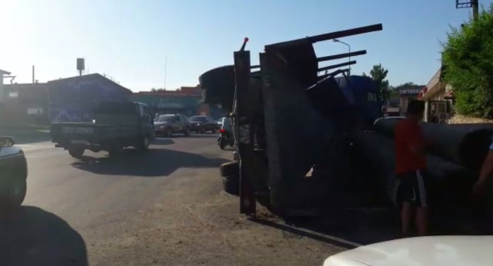В Алматы девушка чудом избежала смерти, когда на нее упали тяжелые металлические трубы из опрокинувшегося прицепа большегрузного автомобиля, передает корреспондент программы "Территория происшествий" на канале СТВ.
