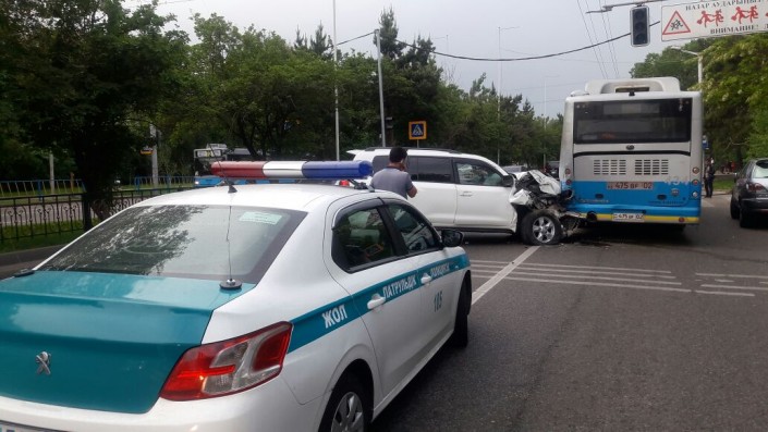 ДТП произошло по проспекту Абая в западном направлении, около пересечения с улицей Саина. Со слов водителя Toyota Land Cruiser, когда он двигался в западном направлении, перед автомобилем резко остановилось транспортное средство, двигавшееся впереди. Во избежание удара водитель допустил столкновение с находившимся рядом автобусом.