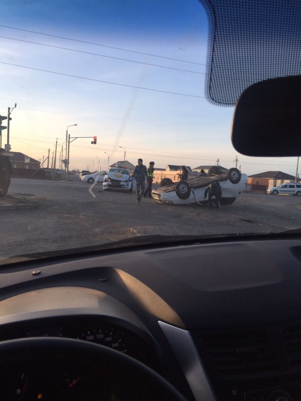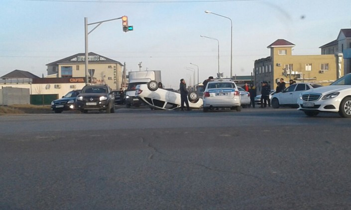 В Атырау машина перевернулась при столкновении с патрульным авто фото очевидцев