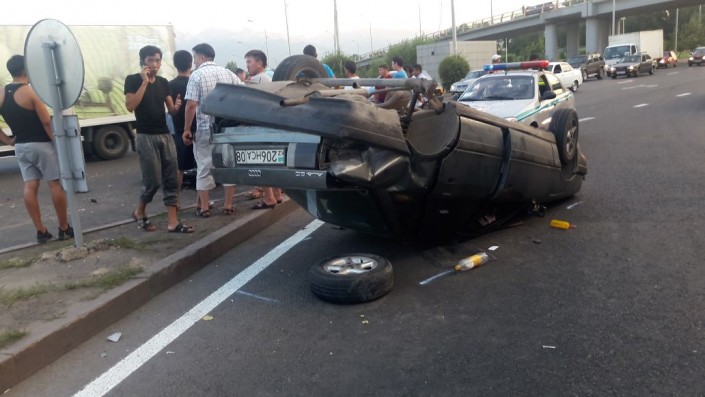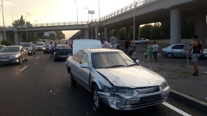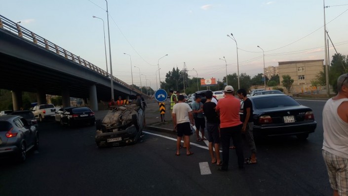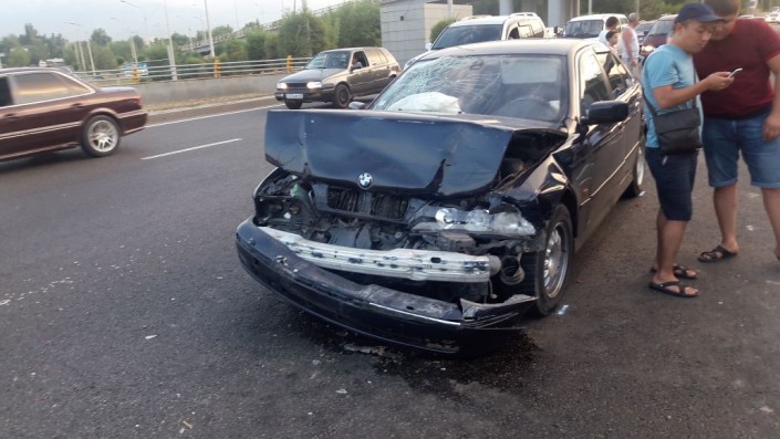 ДТП произошло под мостом на пересечении проспекта Рыскулова и улицы Кудерина. Audi двигалась в восточном направлении по Рыскулова. Очевидцы сообщили, что водитель решил повернуть налево со второго ряда. В этот момент в крайнем левом ряду двигалась Toyota. В результате удара Audi наехала на разделительный бордюр и перевернулась. После этого в Toyota на полном ходу влетела BMW.