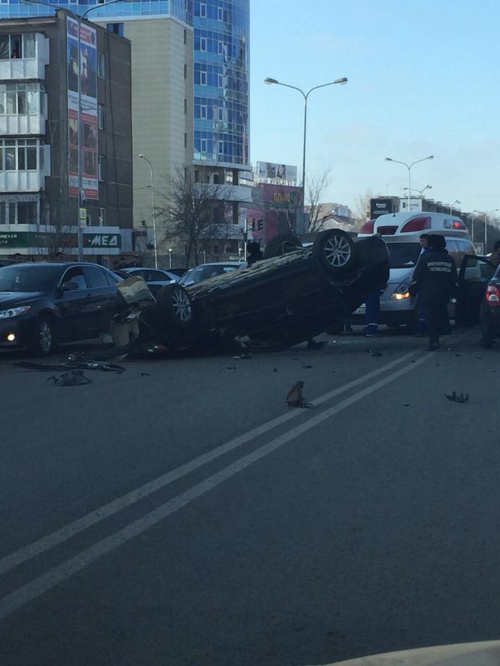 Авто выполнило сальто в ДТП в Астане Фото предоставлено очевидцем.