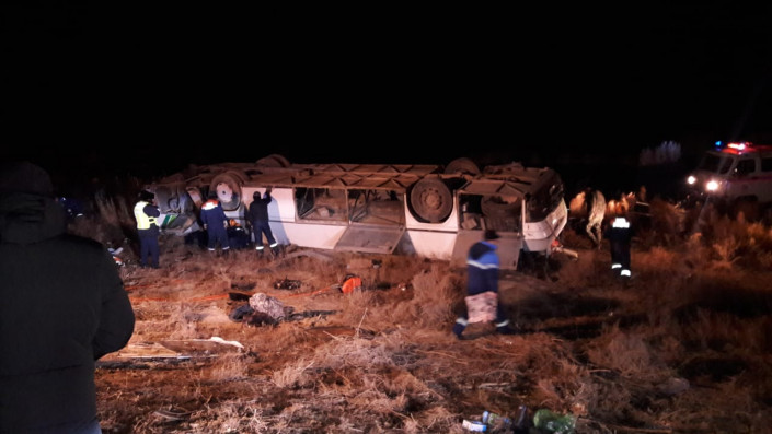 Напомним, авария произошла 3 декабря в 05.25 на автодороге Кызылорда - Кумколь. Из-за гололеда водитель не справился с рулевым управлением и допустил опрокидывание автобуса. Предварительно, в салоне находились 50 пассажиров.