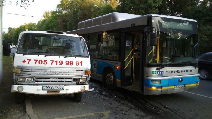 Со слов водителя автобуса 66 маршрута, он следовал по проспекту Алтынсарина в своей автобусной полосе. Эвакуатор стоял припаркованный, предположительно на автобусной полосе в небольшом "кармашке". Как рассказывает водитель автобуса, его начала подрезать машина, зажимать. Он начал уходить правее и из-за этого врезался. Автобус ударился дверью об борт эвакуатора и немного протащил машину.