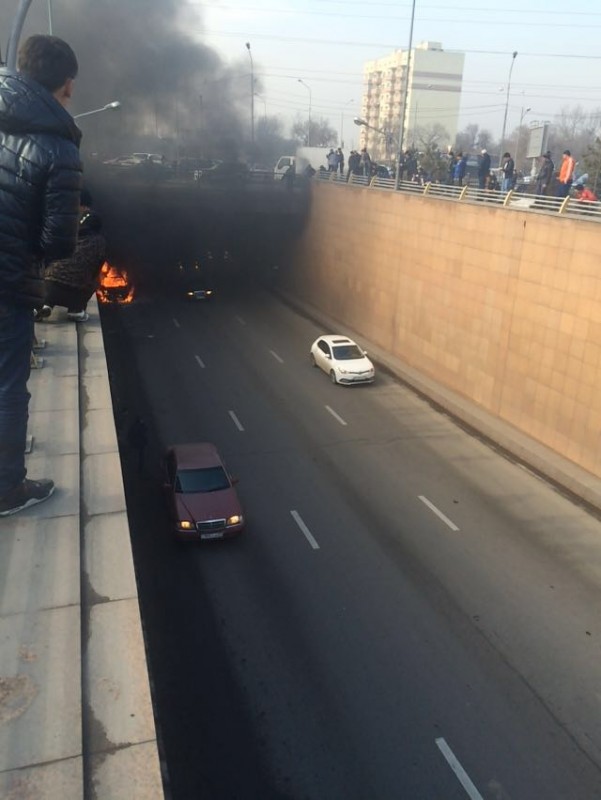 Как сообщили в ДЧС Алматы, информация о возгорании автомобиля поступила в 12.05 23 февраля. Сотрудники пожарной службы прибыли на место в 12.37 по причине пробок на дорогах. Ликвидировать пожар удалось в 12.59.