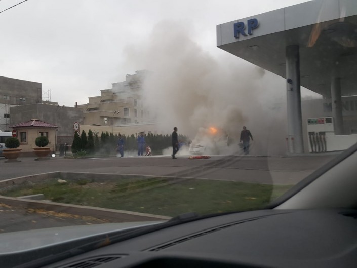 Автомобиль загорелся на заправке в Алматы Фото: Прислали очевидцы