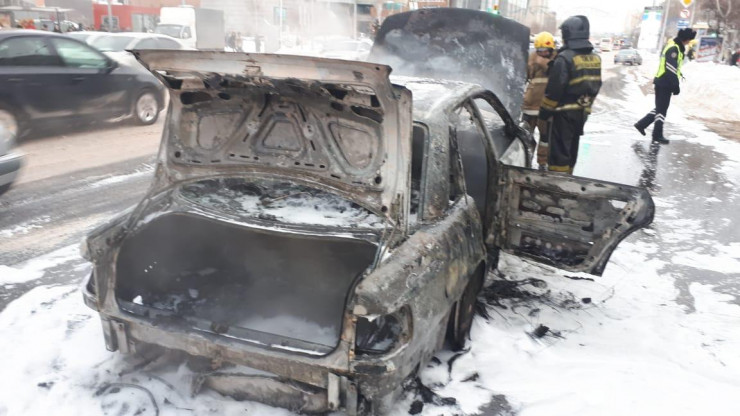 Легковой автомобиль сгорел на проспекте Республики в Нур-Султане, передает корреспондент Tengrinews.kz.