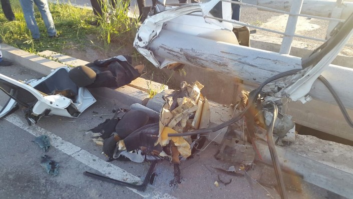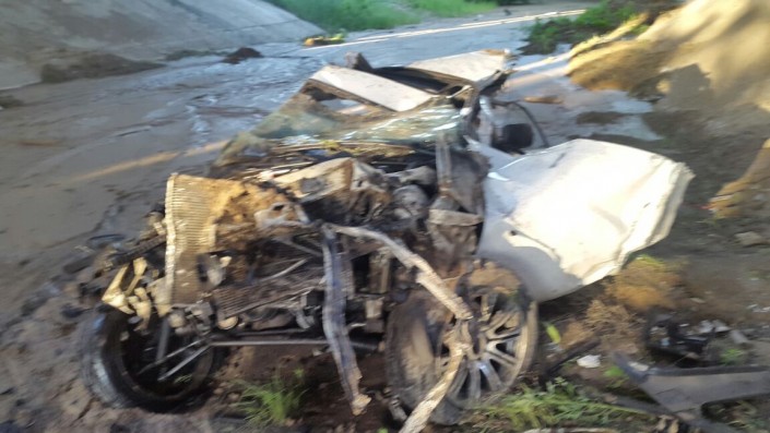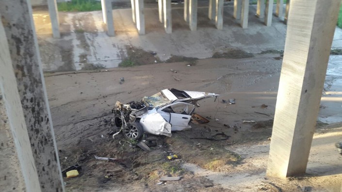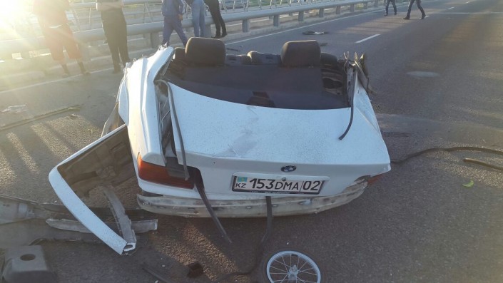 Авария произошла на мосту по улице Момышулы. Не доезжая до поворота на поселок Боралдай, водитель авто не справился с управлением и влетел в металлическое ограждение. От удара BMW буквально разорвало пополам. Переднюю часть автомашины отбросило в речку.