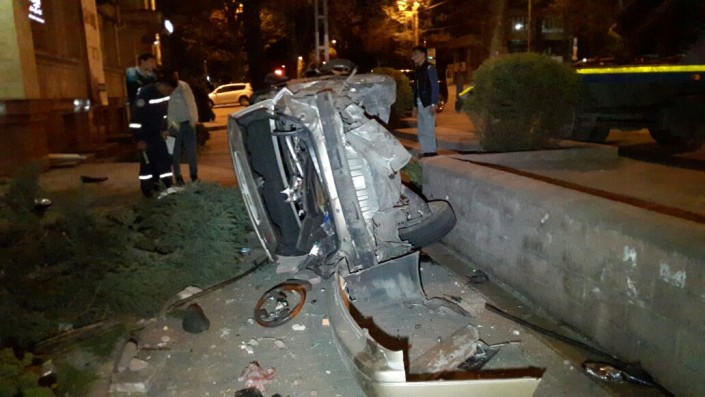 Крупная авария произошла ночью 21 апреля в центре Алматы, передает корреспондент программы "Территория происшествий" на канале СТВ.