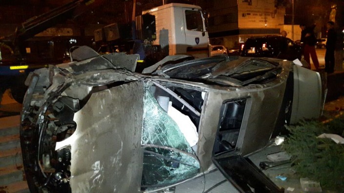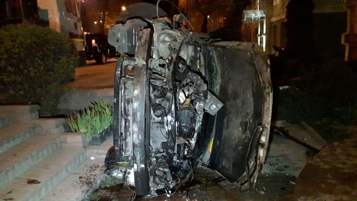 В центре Алматы Lexus протаранил здание на уровне второго этажа © "Территория происшествий"