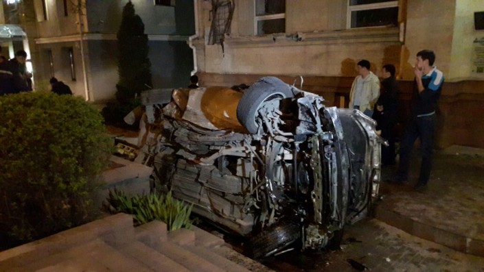 По предварительной версии, автомобиль Lexus GS 300 на большой скорости двигался в восточном направлении по улице Богенбай-батыра. Пересекая проспект Достык, иномарка задела Nissan Cefiro. Не справившись с управлением, водитель Lexus наехал на бордюр. Автомобиль взлетел и врезался в здание практически на уровне второго этажа. Судя по фото с места происшествия, удар был настолько сильный, что у Lexus оторвало руль, а само авто ремонту явно не подлежит.