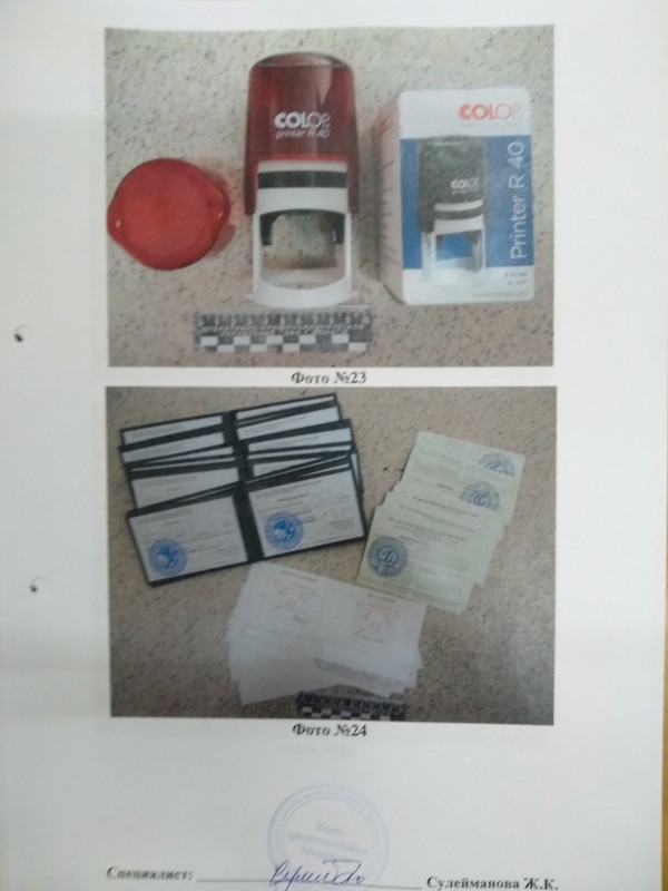 Данный факт зарегистрирован в Едином реестре досудебных расследований по части 1 статьи 385 УК РК "Подделка, изготовление или сбыт поддельных документов, штампов, печатей, бланков, государственных знаков почтовой оплаты, государственных наград". Следствие продолжается.