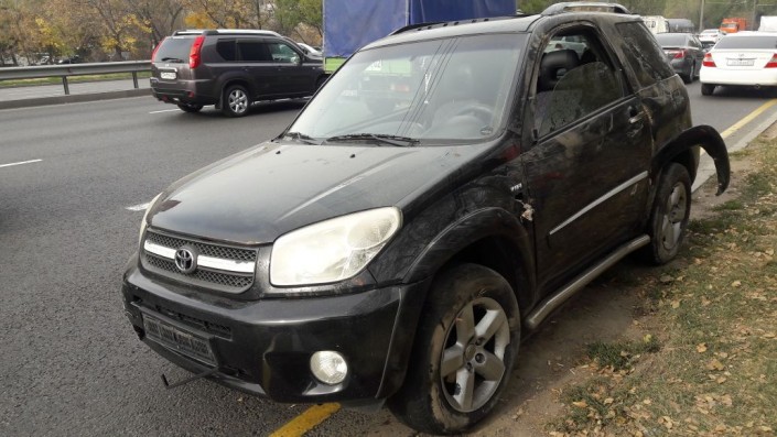 BMW следовала в крайнем правом ряду, выезжая из под моста, RAV-4 ехала в среднем ряду. Со слов водителя BMW, из "кармашка" справа резко начал перестраиваться Daewoo Matiz в ряд, в котором ехала BMW. Водитель BMW начал тормозить и, уходя от столкновения с Matiz, принял немного левее, после чего ударил RAV-4. От удара RAV-4 опрокинулась на бок и зацепила Matiz, который перелетел через бордюр и ударился о столб.