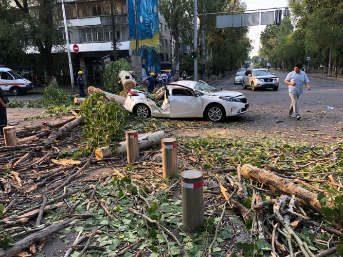 Дерево рухнуло на авто в Алматы: женщине сделали операцию Фото ©Tengrinews.kz