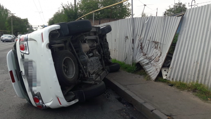 Внедорожник опрокинулся на улице Алматы, передает корреспондент программы "Территория происшествий" на телеканале СТВ.