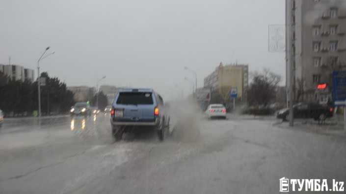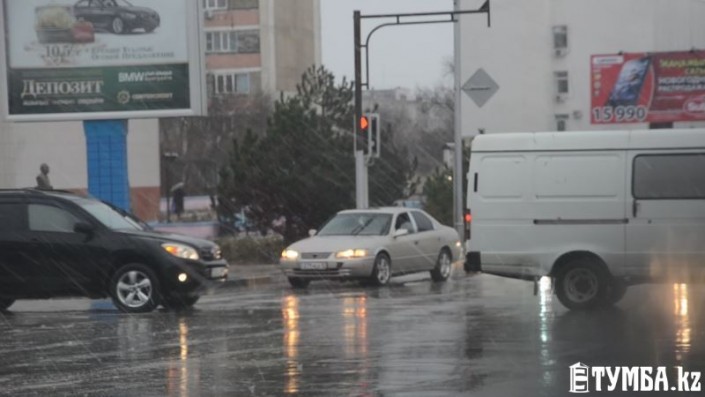 В Актау дождь со снегом парализовали дорожное движение, сообщает Тумба.kz.