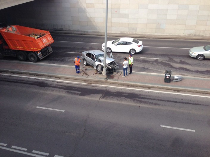 ДТП под мостом: Автомобиль врезался в столб в Астане © Tengrinews.kz