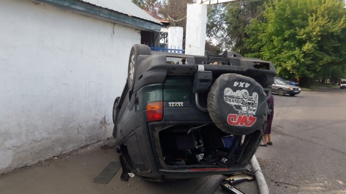 В Алматы в результате ДТП без задних колес остался автомобиль марки BMW X5, сообщает корреспондент программы "Территория происшествий" на телеканале СТВ.