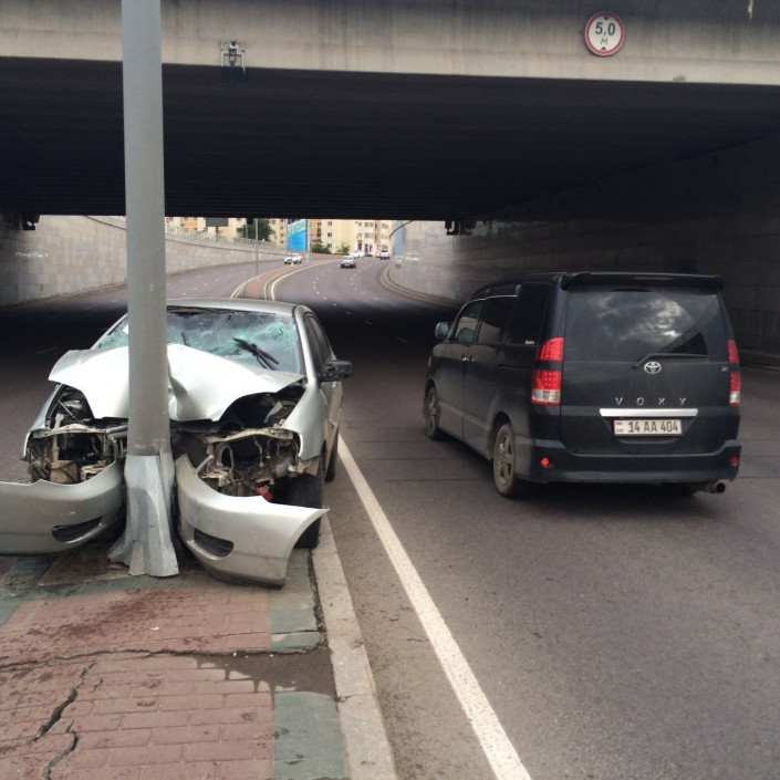 ДТП в Астане: Автомобиль врезался в фонарный столб