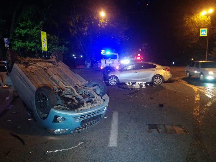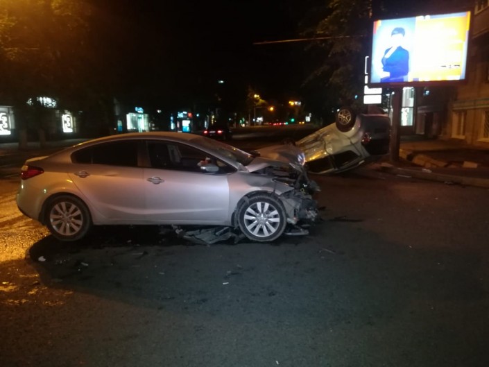 Авария произошла на пересечении улиц Кабанбай батыра и Пушкина. Со слов очевидцев, Daewoo двигалась по Пушкина в южном направлении. Водитель не заметил или проигнорировал знак "Уступи дорогу" и выехал на Кабанбай батыра. Водитель KIA не успел среагировать и на полном ходу врезался в Daewoo. От удара Daewoo опрокинулся на крышу.