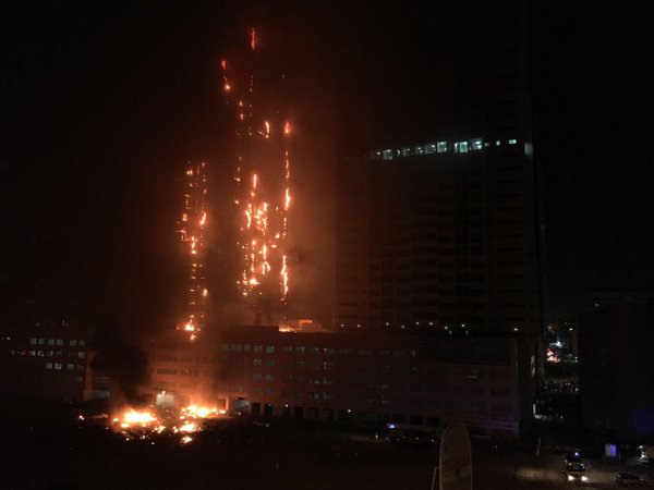 По данным портала, загорелся жилой комплекс Ajman One, состоящий из 12 высотных зданий. Сигнал о возгорании поступил около 21.45 по местному времени. Огнем охвачены уже два небоскреба. Жители зданий эвакуированы. Зарево с места происшествия в ночи видно на расстоянии нескольких километров.