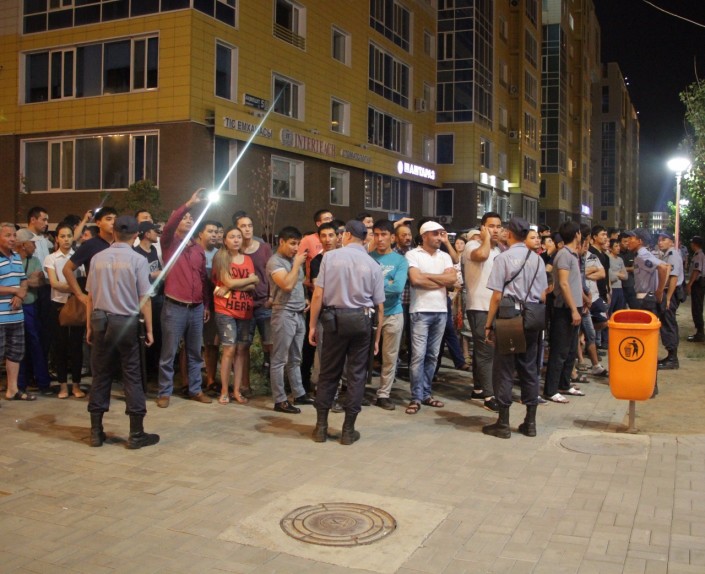 "Между рабочими и охранной структурой произошел конфликт на бытовой почве на КПП строительного объекта "Абу-Даби Плаза". На место конфликта выезжали представители акимата и правоохранительных органов. Принятыми мерами конфликт локализован, и обеспечена охрана общественного порядка. Проводится проверка", - говорится в сообщении ведомства.