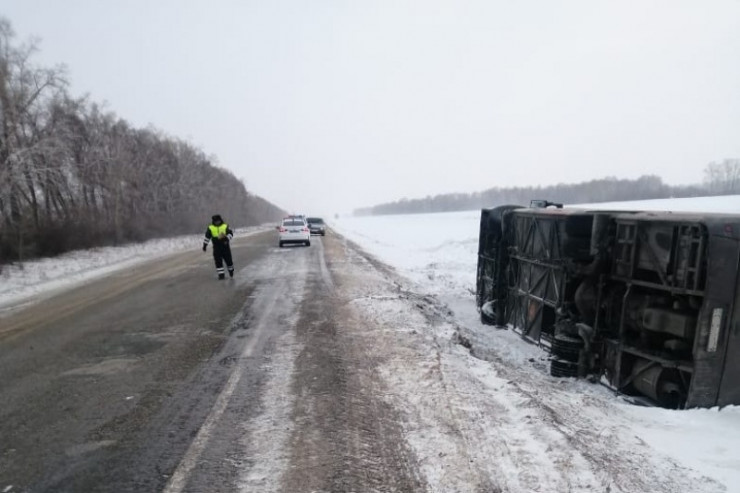 Ехавший из Казахстана автобус перевернулся в России Фото: 22.мвд.рф