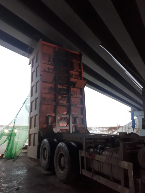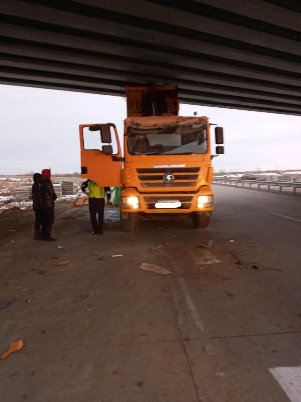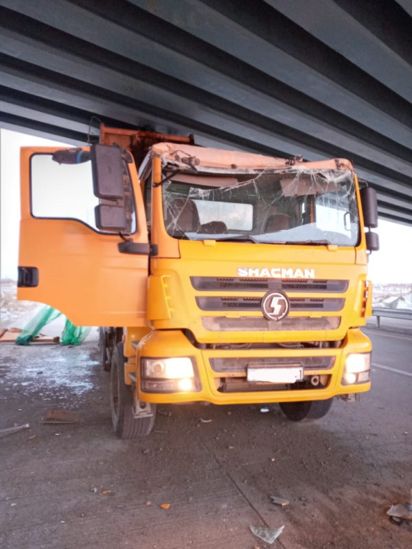 "На мостовой развязке, расположенной на автодороге Павлодар - Кызылорда, водитель 1968 года рождения, управляя автомашиной марки Shacman Sx, выполнял ремонтные работы, осуществлял доставку грунта. Выгрузив грунт, он не опустил кузов и продолжил движение. В результате, проезжая под мостом, он совершил столкновение с бетонной опорой", - сообщили в пресс-службе Департамента полиции Павлодарской области.